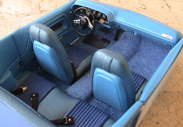 pretty realistic. The seatbelts were made of stripes and photoetched supply from The Model Car Garage. To have the correct rear speaker cut-out pattern on the package tray I glued |